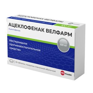 Главная » Аптека Ацеклофенак Велфарм таблетки 100 мг 30 шт Просмотров 3 Круглые двояковыпуклые таблетки, покрытые пленочной оболочкой белого или почти белого цвета. На поперечном разрезе ядро белого или почти белого цвета. Велфарм