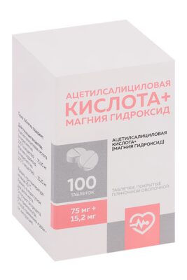 Главная » Аптека Ацетилсалициловая кислота+Магния гидроксид 75 мг+15.2 мг, 100 шт, таблетки покрытые пленочной оболочкой Просмотров 6 АВВА РУС АО