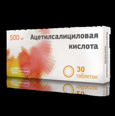 Фармакологическое действие Фармакологическая группа: Нестероидный противовоспалительный препарат Код АТХ: [N02BAOl] Фармакодинамика: Препарат оказывает анальгезирующее, жаропонижающее и противовоспалительное действие. Механизм действия ацетилсалициловой кислоты основан на ингибировании активности ферментов циклооксигеназ ЦОГ-1 и ЦОГ-2, участвующих в синтезе простагландинов, простациклинов и тромбоксана. В результате нарушается синтез простагландинов, обеспечивающих формирование отека и гиперальгезии. Снижение содержания простагландинов (преимущественно E1) в центре терморегуляции приводит к снижению температуры тела вследствие расширения сосудов кожи и усиления процессов потоотделения. Анальгезирующий эффект обусловлен как центральным (влияние на центры болевой чувствительности), так и периферическим (уменьшение альгогенной активности брадикинина) действием. Противовоспалительное действие препарата обусловлено снижением синтеза простагландинов, уменьшением проницаемости капилляров, понижением активности гиалуронидазы, ограничением энергетического обеспечения воспалительного процесса путем торможения образования аденозинтрифосфорной кислоты. Уменьшает агрегацию, адгезию тромбоцитов и угнетает процессы тромбообразования за счет подавления синтеза тромбоксана А2 в тромбоцитах. Блокада ЦОГ-1 в слизистой оболочке желудка приводит к торможению синтеза га-стропротекторных простагландинов, что может способствовать изъязвлению слизистой оболочки желудка и возникновению последующего кровотечения. Фармакокинетика: При приеме внутрь абсорбция полная. Во время абсорбции подвергается системной элиминации в стенке кишечника и в печени (деацетилируется). Резорбированная часть быстро гидролизуется специальными эстеразами, поэтому период полувыведения препарата — не более 15-20 мин. В организме циркулирует (на 75-90% в связи с альбумином) и распределяется в тканях в виде аниона салициловой кислоты. Время достижения максимальной концентрации в плазме – 2 ч. Сывороточный уровень салицилатов весьма вариабелен. Салицилаты легко проникают во многие ткани и жидкости организма, в т.ч. в спинномозговую, перитонеальную и синовиальную жидкости. Проникновение в полость сустава ускоряется при наличии гиперемии и отека и замедляется в пролиферативной фазе воспаления. В небольших количествах салицилаты обнаруживаются в мозговой ткани, следы – в желчи, поте, фекалиях. При возникновении ацидоза большая часть салициловой кислоты превращается в неионизированную кислоту, хорошо проникающую в ткани, в т.ч. в мозг. Быстро проходит через плаценту, в небольших количествах выводится с грудным молоком. Метаболизируется преимущественно в печени с образованием 4 метаболитов, обнаруживаемых во многих тканях и моче. Выводится преимущественно путем активной секреции в канальцах почек в неизмененном виде (60%) и в виде метаболитов. Выведение неизмененного салицилата зависит от pH мочи (при подщелачивании мочи возрастает ионизирование салицилатов, ухудшается их реабсорбция и значительно увеличивается выведение). Скорость выведения зависит от дозы: при приеме небольших доз период полувыведения препарата – 2-3 ч, с увеличением дозы может возрастать до 15-30 ч. У новорожденных детей салицилаты могут вытеснять билирубин из связи с альбу
