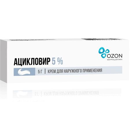 Показания Инфекции кожи, вызванные вирусом Herpes simplex типов 1 и 2, включая генитальный герпес и герпес губ; опоясывающий лишай; ветряная оспа. Фармакологическое действие Противовирусное средство для наружного применения, синтетический аналог пуринового нуклеозида. Тимидинкиназа инфицированных вирусом клеток активно преобразует ацикловир через ряд последовательных реакций в моно-, ди- и трифосфат ацикловира. Последний взаимодействует с вирусной ДНК-полимеразой и встраивается в ДНК, которая синтезируется для новых вирусов. Таким образом, формируется «дефектная» вирусная ДНК, что приводит к подавлению репликации новых поколений вирусов. Ацикловир активен в отношении вируса Herpes simplex типов 1 и 2, вируса Varicella zoster, вируса Эпштейна-Барр и цитомегаловируса. Лекарственное взаимодействие При наружном применении ацикловира клинически значимого лекарственного взаимодействия не отмечено. Иммуностимуляторы — возможно усиление эффекта ацикловира.