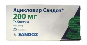 Показания к применениюДля системного применения (внутрь и в/в): инфекции, вызванные вирусами Herpes simplex типов 1 и 2 и Varicella zoster; профилактика инфекций, вызванных вирусами Herpes simplex и Varicella zoster (в т.ч. у больных со сниженным иммунитетом); в составе комплексной терапии при выраженном иммунодефиците (в т.ч. при клинической картине ВИЧ-инфекции) и у пациентов, перенесших трансплантацию костного мозга; профилактика цитомегаловирусной инфекции после трансплантации костного мозга.;Для местного применения в офтальмологии: кератиты и другие поражения глаз, вызванные вирусом Herpes simplex.;Для наружного применения: инфекции кожных покровов, вызванные вирусами Herpes simplex и Varicella zoster.Применение при беременности и кормлении грудьюПрименение ацикловира при беременности возможно в случаях, когда предполагаемая польза для матери превышает потенциальный риск для плода.;В/в применение ацикловира в период лактации противопоказано (выделяется с грудным молоком).;В экспериментальных исследованиях на животных показано, что ацикловир проникает через плацентарный барьер.ПротивопоказанияПовышенная чувствительность к ацикловиру и валацикловиру; при в/в введении — лактация (грудное вскармливание).Побочное действиеПри приеме внутрь: тошнота, рвота, диарея, боль в животе, кожная сыпь, головная боль, головокружение, повышенная утомляемость, снижение концентрации внимания, галлюцинации, сонливость или бессонница, лихорадка; редко — выпадение волос, преходящее повышение концентрации в крови билирубина, мочевины, креатинина, активности печеночных ферментов, лимфоцитопения, эритропения, лейкопения.;При в/в введении: острая почечная недостаточность, кристаллурия, энцефалопатия (спутанность сознания, галлюцинации, возбуждение, тремор, судороги, психоз, сонливость, кома), флебит или воспаление в месте введения, тошнота, рвота.;При местном применении: ощущение жжения в месте аппликации, поверхностный точечный кератит, блефарит, конъюнктивит.;При наружном применении: в месте аппликации возможны ощущение жжения, кожная сыпь, зуд, шелушение, эритема, сухость кожи; при попадании на слизистые оболочки — воспаление.СоставАцикловир 200 мгВзаимодействие с другими препаратамиПри одновременном применении пробенецид снижает канальцевую секрецию ацикловира и тем самым увеличивает концентрацию в плазме крови и T1/2 ацикловира.;При одновременном применении с микофенолата мофетилом увеличивается AUC ацикловира и неактивного метаболита микофенолата мофетила.;При одновременном применении ацикловира с нефротоксическими препаратами увеличивается риск развития нефротоксического действия (особенно у пациентов с нарушенной функцией почек).;При смешивании растворов необходимо учитывать щелочную реакцию ацикловира для в/в введения (рН 11).