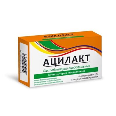 Описание Код АТХ: G01AX14 Суппозитории от желтовато-серого до светло-бежевого цвета, конусообразной или цилиндрической формы со специфическим запахом жира. Допускается неоднородность окраски в виде вкраплений или «мраморности», потемнение светло-коричневого цвета на конусообразном конце суппозитория. Допускается наличие воздушного стержня или воронкообразного углубления. Характеристика препарата: Ацилакт, суппозитории вагинальные представляет собой микробную массу живых, антагонистически активных ацидофильные лактобактерии штаммов Lactobacillus acidophilus 100 аш, NК1, К3Ш24, лиофильно высушенных в среде культивирования с добавлением защитной сахарозо-желатино-молочной среды и сформированные в суппозитории. Фармакотерапевтическая группа: эубиотик Фармакологические свойства Живые ацидофильные лактобактерии обладают высокой антагонистической активностью в отношении патогенных и условно-патогенных микробов, включая Staphylococcus spp, *Содержание компонентов защитной среды высушивания в готовом препарате не определяют Escherichia coli, Proteus spp, что определяет корригирующее действие препарата при нарушениях микробиоценоза влагалища. Лактобактерии метаболизируют гликоген вагинального эпителия до молочной кислоты, которая поддерживает рН влагалища на уровне 3,8-4,02. Высокая концентрация молочной кислоты создает неблагоприятные условия для жизнедеятельности кислоточувствительных патогенных и условно-патогенных бактерий. Закисляя слизистую влагалища, лактобактерии участвуют в формировании экологического барьера и обеспечивают резистентность слизистой к посторонней микрофлоре. Форма выпуска Суппозитории вагинальные. По 5 суппозиториев в контурной ячейковой упаковке из пленки ПВХ/ПВХ марки ЭП 73 С. По 2 контурные ячейковые упаковки вместе с инструкцией по применению помещают в пачку из картона.