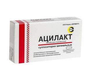Показания к применениюАцилакт применяют в гинекологической практике для лечения пациентов с заболеваниями различной этиологии, которые сопровождаются нарушением микрофлоры влагалища. При неспецифических кольпитах, дисбиозах влагалища (включая бактериальный вагиноз) препарат Ацилакт может быть назначен в качестве монотерапии или после окончания курса приема противомикробных средств. Женщинам с подострыми и хроническими формами воспалительных заболеваний шейки, придатков и тела матки препарат Ацилакт назначают после проведения антибактериальной терапии для восстановления микрофлоры.При гормонозависимых и атрофических кольпитах Ацилакт может быть назначен в качестве монотерапии или в комплексе со специфической гормональной терапией.Ацилакт в качестве профилактического средства назначают перед проведением гинекологических операций и в схемах предродовой подготовки женщинам с высоким риском развития послеоперационных и послеродовых инфекционных осложнений или дисбактериоза влагалища. При лечении урогенитальных инфекций, в том числе заболеваний, передающихся половым путем, Ацилакт назначают в комплексе со специфической антимикробной или противовирусной терапией (в частности рекомендовано включение препарата Ацилакт в схемы терапии гонореи, урогенитального герпеса и хламидиоза). В зависимости от тяжести и характера заболевания целесообразно назначение препарата Ацилакт в форме суппозиториев одновременно с пероральной формой препарата Ацилакт.Применение при беременности и кормлении грудьюРешение о назначении препарата Ацилакт женщинам в период лактации и беременности принимает врач.ПротивопоказанияНе желательно назначать препарат Ацилакт женщинам, страдающим вагинальным кандидозом (в таком случае препарат Ацилакт может быть назначен для восстановления микрофлоры влагалища после проведения специфической терапии и получения отрицательных результатов микробиологических анализов).Побочное действиеНа данный момент сообщений о развитии нежелательных эффектов препарата Ацилакт в форме суппозиториев не поступало.Состав1 суппозиторий препарата Ацилакт содержит:Живых ацидофильных лактобактерий – 10000000,Дополнительные ингредиенты.Взаимодействие с другими препаратамиДопускается сочетанное применение суппозиториев Ацилакт с противомикробными, противовирусными и иммуномодулирующими препаратами. Не желательно одновременное применение препарата Ацилакт с интравагинальными формами антибиотиков.