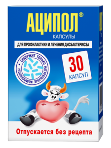 Капсулы твердые желатиновые № 3 оранжевого цвета. Содержимое капсулы – порошок от светло-кремового до светло-коричневого цвета с кисломолочным запахом.