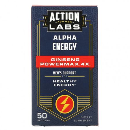 Action Labs, Alpha Energy, Ginseng Powermax 4x, поддержка для мужчин, 50 растительных капсул