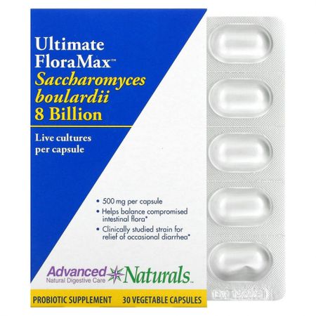 Advanced Naturals, Ultimate FloraMax, сахаромицеты Буларди, 8 миллиардов КОЕ, 30 растительных капсул