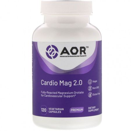 Веганский продуктБез ГМО Без глютена Премиальное качество Пищевая добавка Производится в соответствии со стандартом качества GMP Соответствует стандарту качества Продукт прошел независимое тестирование Предупреждение. Оротат магния в Cardio Mag 2.0 от AOR полностью вступает в реакцию, в отличие от большинства продуктов, представляющих собой пищевые смеси оротовой кислоты с неорганическими солями магния. Этот настоящий оротат магния содержит два соединения, важных для оптимальной поддержки сердечнососудистой системы.
