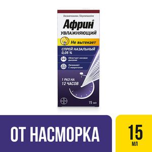 Главная » Аптека Африн Спрей назальный увлажняющий 0,05 % 15 мл Просмотров 3 Противоконгестивное средство – альфа-адреномиметик. Байер