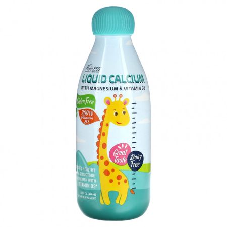 Описание Без глютена200 МЕ витамина D3Замечательный вкусНе содержит молочных продуктовПоддерживает здоровую структуру и рост костей с помощью витамина D3Пищевая добавкаЖидкий кальций Ageless обеспечивает строительные блоки, которые помогают поддерживать здоровье костей и зубов. Магний и витамин D3 помогают регулировать усвоение кальция костями и зубами. Витамин D также способствует здоровью иммунной системы. Жидкий кальций Ageless с магнием и витамином D3 — это вкусная сбалансированная жидкость, предназначенная для ежедневного приема. Ageless использует только самые лучшие ингредиенты. Наш продукт не содержит глютена, пшеницы, молока, яиц, кукурузы и дрожжей. Мы не используем искусственных красителей, ароматизаторов и подсластителей. Мы с уверенностью дарим нашим детям продукты Ageless, потому что считаем их самыми лучшими. Кальций и витамин D3 от Ageless сочетает в себе необходимый уровень кальция и витамина D3, а также содержит добавленный магний, который помогает увеличить усвоение кальция. Рекомендации по применению Для детей от 7 месяцев до 1 года: 1 чайная ложка (5 мл) в день. Для детей от 1 до 3 лет 2 чайные ложки (10 мл) в день. Для детей от 4 лет: 1 столовая ложка (15 мл) в день. Хорошо встряхните перед использованием.Можно давать в неразбавленном виде или смешать с любимым напитком ребенка. Ингредиенты Очищенная вода, фруктоза, лимонная кислота, натуральный ароматизатор, сорбат калия, ксантановая камедь. Предупреждения Хранить в сухом и прохладном месте.Хранить в недоступном для детей месте. Не используйте данный продукт, если защитная пленка повреждена или отсутствует. Пищевая ценностьРазмер порции: 1 ст. л. (15 мл)Порций в упаковке: 32 Количество в 1 порции% От суточной нормы