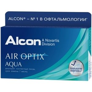 Контактные линзы на месяц Air Optix Aqua (Эйр Оптикс Аква) представляют собой уникальный продукт, который сочетает в себе несколько компонентов, обеспечивающих непревзойденный комфорт и качество при ношении на протяжении всего периода эксплуатации.Вы не почувствуете присутствие Air Optix Aqua на глазах — специальный смазывающий компонент, которым покрыта поверхность линз, лишит вас возможных неприятных ощущений. Забудьте о сухости и жжении — структура линз Air Optix Aquaобладает высоким показателем увлажненности. Линза устроена таким образом, что через нее к роговице глаза поступает необходимое количество важнейших для здорового зрения веществ, которые находятся в кислороде. Таким образом, ваши глаза «дышат».Особенности линз Air Optix Aqua: Варьированный режим ношения, в том числе пролонгированный, Наличие увлажняющего компонента, обеспечивающего комфортное ношение, Удобство использования для новичков.Многие специалисты рекомендуют именно Air Optix Aqua для тех, кто впервые использует контактные линзы и для пациентов с высоким показателем чувствительности глаз. Уникальная структура данных контактных линз обеспечит бережный уход и подарит ясную и четкую картинку окружающего мира.Срок ношения линз — 1 месяц.