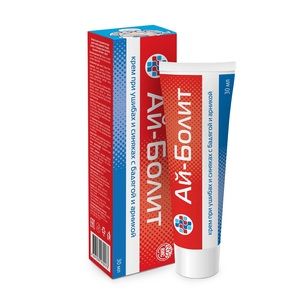 Крем для тела Ай-Болит создан на основе натурального компонента бадяги — традиционное народное средство от синяков и ушибов. Способствует снятию отечности и воспалений.Ушиб – одна из самых распространенная бытовая травма. При ушибах наиболее уязвим самый глубокий слой кожи – дерма — и расположенные под ней сосуды. В месте ушиба может возникнуть припухлость – синяк, гематома – из-за кровоизлияния и воспалительного отека. Ушиб может сопровождаться болью из-за сдавления нервных окончаний. В таком случае применяется рассасывающая терапия – действие, направленные на рассасывание синяка, устранение воспаления и отечности (припухлости).Линейка косметических средств Ай-Болит направлена поддержку и уход за кожей с последствиями ушибов и синяков. В составе средств Ай-Болит нет гормонов – эффект оказывается благодаря тщательно подобранных формул на основе действующих компонентов растительных экстрактов и вспомогательных веществ. АЙ-БОЛИТ крем – это косметическое средство с кремовой текстурой с арникой, бадягой, конским каштаном и прополисом для ухода за кожей при ушибах и синяках. Действие активных компонентов крем Ай-Болит направлено на ускорение рассасывания гематомы в месте ушиба, уменьшению процессов воспаления, улучшение кровотока в ушибленной области для устранения припухлости и синяка.Описание компонентов:Бадяга — универсальный компонент, полученный путем переработки особой пресноводной губки, обладает активным рассасывающим воздействием, способствует исчезновению застойных пятен, стимулирует выработку эластина и улучшает внешний вид кожи. Арника – способствует улучшению кровообращения, успокаивает воспаление, помогает при ушибах. Используется спортсменами после перенапряжения мышц и падений благодаря ее способности рассасывать гематомы. Экстракт конского каштана укрепляет стенки капилляров, стимулируя циркуляцию крови, улучшает обменные процессы в клетках кожи, способствует уменьшению отеков. Экстракт каштана конского используется для улучшения микроциркуляции крови, купирования отечности, предупреждения образования тромбов.