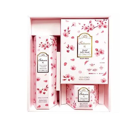 Подарочный набор уходовой косметики для лица линии Sakura с экстрактами 3-х видов сакуры, экстрактом риса, коллагеном и гиалуроновой кислотой для интенсивного увлажнения и упругости кожи. Продукты линии увлажняют и восстанавливают кожу, придавая ей упругость, свежесть и сияние. Защищают кожу от внешних раздражителей и способствует ее обновлению. В состав набора входит 3 продукта в подарочной коробке. • Продукты линии интенсивно увлажняют и восстанавливают кожу. • Придают коже упругость, свежесть и сияние. • Содержат экстракты 3-х видов сакуры (японской вишни), экстракт риса, коллаген и гиалуроновую кислоту. Экстракт листьев вишни Ёсино защищает чувствительную кожу. Экстракт цветов вишни Сатодзакура улучшает эластичность кожи, увлажняет, удерживает воду и восстанавливает кожу. Экстракт плодов вишни Суминомидзакуры содержит хорошо сбалансированные минералы и сохраняет кожу увлажненной и упругой. Экстракт риса – чрезвычайно увлажняющий ингредиент, также известный как «молекула долголетия», повышает упругость и эластичность кожи, делая ее молодой и сияющей. Коллаген увлажняет кожу и сужает поры. Гиалуроновая кислота увлажняет и задерживает влагу в подкожном слое. • Защищают кожу от внешних раздражителей и способствует ее обновлению. • Крем для лица Aishodo Sakura Face Cream содержит астаксантин – сильный антиоксидант, извлеченный из водорослей Гематококк (Haematococcus), обладающий превосходным антиоксидантным эффектом, который выше, чем у витамина В примерно в 550-1000 раз и в 800 раз выше, чем у коэнзима Q-10!!! • В состав набора входят 3 продукта в подарочной коробке. Aishodo Sakura Face Lotion&Essence Two In One. Лосьон-эссенция для лица Айшодо Сакура, 150 мл Aishodo Sakura Facial Jelly Mask. Маска-желе для лица Айшодо Сакура, 10 шт. Aishodo Sakura Face Cream. Крем для лица Айшодо Сакура, 50 г