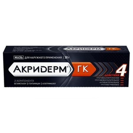 Главная » Аптека Акридерм ГК мазь для наружного применения 0,05%+0,1%+1% 30г Просмотров 12 Акрихин АО