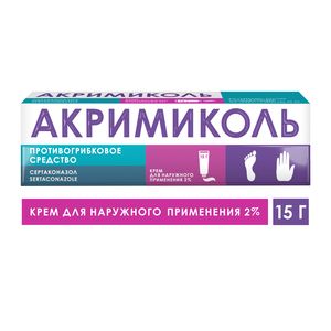 Главная » Аптека Акримиколь 2% Крем для наружного применения 15 г Просмотров 9 Крем от белого до белого с желтоватым или сероватым оттенком цвета, допускается наличие слабого специфического запаха. Акрихин