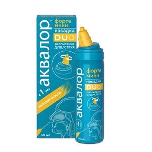 Аквалор Форте Дуо Мини — гипертонический раствор морской воды, предназначенный для деликатного орошения и промывания носовых ходов у взрослых и детей с 1 года. Металлический флакон объемом 50 мл снабжен инновационной поворотной насадкой с двойным типом распыления «душ/струя». Режим «душ» используется для снятия заложенности за счёт максимальной площади взаимодействия с отечной слизистой, а режим «струя» — при сильном насморке. В его основе – натуральная морская вода, которая забирается из экологически чистых районов Атлантического океана в территориальных водах Франции и Швеции. Она богата множеством полезных микроэлементов и минералов, за счет чего средство обладает антисептическим, иммуностимулирующим действием. Благодаря высокой концентрации соли Аквалор Форте Дуо способствует снятию отека слизистой, облегчая носовое дыхание в период респираторного заболевания, а также смягчает и очищает носоглотку после оперативного вмешательства. Может применяться для удаления слизи, уменьшения выделений, размягчения и удаления корок, увлажнения слизистой оболочки полости носа. Его удобно брать с собой. Не является лекарственным средством.