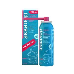 Аквалор Горло спрей 150 мл, натуральная морская вода с экстрактами алое вера и ромашки римской, для профилактики и лечения острых и хронических воспалительных заболеваний полости рта и горла, для детей с 6 мес. и взрослых, разрешено беременным.Средство предназначено для увлажнения горла и удаления патологического содержимого с поверхности слизистой оболочки полости рта и горла. Оказывает благоприятное воздействие на слизистую оболочку полости рта и горла, способствует уменьшению дискомфорта и сухости в полости рта и горла. Гипертонический раствор морской воды обеспечивает уменьшение отека слизистой оболочки полости рта и горла, благодаря удалению избыточной жидкости из межклеточного пространства за счет разности осмотического давления. Экстракты алоэ вера и ромашки римской обладают противовоспалительными, антисептическими и восстанавливающими свойствами Йод и хлорид натрия, содержащиеся в морской воде, обладают антисептическими свойствами, ионы цинка и селена создают условия для активации местного иммунитета слизистой оболочки полости рта и горла.После промывания полости рта и горла средством повышается терапевтическая эффективность лекарственных средств, наносимых на слизистую оболочку полости рта и горла, и сокращается продолжительность респираторных заболеваний. Способствует удалению любых патогенов (вирусных, бактериальных, грибковых) со слизистой оболочки полости рта и горла, не нарушая биоценоза слизистой оболочки.Средство для орошения и промывания горла для детей и взрослых «Аквалор горло мини с Алоэ вера и Ромашкой римской» 150 мл представляет собой аэрозоль в металлическом баллоне с анатомической насадкой для горла с распылением в виде «душа». Содержимое баллона — прозрачная бесцветная жидкость со слабым запахом ромашки, с соленым вкусом, являющаяся стерильным раствором морской воды, с гипертонической концентрацией NaCl и экстрактами Алоэ вера (0,025% раствор) и Ромашки римской (0,025% раствор). Не содержит консервантов. Безопасен при проглатывании!