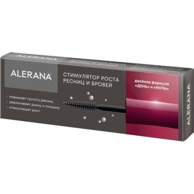 Рекомендован для стимулирования роста ресниц и бровей:• Улучшает питание волосяных фолликулов;• Стимулирует рост ресниц и бровей;• Восстанавливает структуру и природную пигментацию ресниц и бровей;• Восстанавливает ресницы после наращивания;• Защищает от негативных внешних воздействий.Активные компоненты формулы «ДЕНЬ»: Церамиды защищают ресницы от ломкости.Пантенол и гиалуронат натрия оказывают восстанавливающий и увлажняющий эффект.Экстракты крапивы, каштана и элеутерококка улучшают микроциркуляцию в коже, ускоряют обменные процессы.Таурин способствует формированию и росту здоровых волос.Активные компоненты формулы «НОЧЬ»: растительные масла миндаля, касторовое, жожоба и репейное прекрасно увлажняют, смягчают, восстанавливают текстуру и природную пигментацию ресниц и бровей.Витамин Е обладает антиоксидантными свойствами и улучшает питание фолликулов.КЛИНИЧЕСКИ ДОКАЗАНО: стимулятор роста ресниц и бровей ALERANA увеличивает длину ресниц; повышает густоту ресниц; увеличивает толщину ресниц. После 3-х месячного курса применения стимулятора роста ресниц и бровей ALERANA:•В 46% случаев увеличилась длина, густота, толщина ресниц•В 93% случаев уменьшается ломкость ресниц•В 94% случаев повышается блеск ресниц.