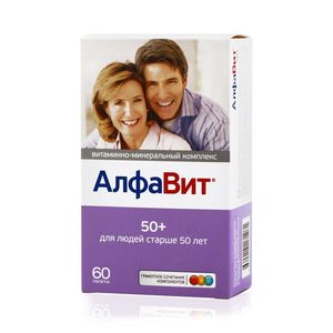 Витамины «Алфавит 50+» для мужчин и женщин после 50 лет: профилактика остеопороза, заболеваний сердца и сосудов. Повышенное содержание кальция позволяет применять комплекс в комбинированной терапии остеопороза и остеоартроза.Содержит каротиноиды (лютеин и ликопин), которые защищают глаза от УФ-излучения, замедляют процессы возрастных изменений сетчатки.В отличие от других комплексов разработан с учетом научных рекомендаций по раздельному и совместному приему полезных веществ. В результате:- вероятность аллергических реакций сведена к минимуму,- витаминная профилактика эффективнее в среднем на 30–50%.