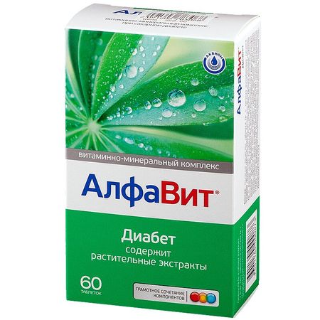 Фармакологическое действие БАД к пище. Диета и снижение способности организма усваивать полезные вещества из пищи (как одно из последствий сахарного диабета) обусловливают повышенную потребность в витаминах и минералах, тем более что некоторые из них влияют на переносимость глюкозы и профилактику таких осложнений сахарного диабета, как невропатия, нефропатия, ретинопатия. Включает витамин В1 и фолиевую кислоту, необходимые для нормального энергетического обмена в организме. Также в состав входят витамин С и железо, способствующие профилактике анемии. Включает витамины А, С и Е, селен и другие вещества, укрепляющие иммунитет, способствующие профилактике осложнений сахарного диабета. Йод необходим для нормализации работы гормональной системы. Хром и цинк необходимы для образования активной формы инсулина. Содержит витамины К и D3, а также кальций. Кроме 13 витаминов и 9 минералов в продукт включены высококачественные экстракты растений и другие полезные вещества. Экстракт побегов черники способствует снижению уровня сахара в крови, защищает стенки сосудов, предупреждает развитие нарушений зрения. Экстракты корней одуванчика и лопуха улучшают работу поджелудочной железы, способствуют накоплению гликогена, что благоприятно влияет на углеводный обмен. Кроме того, экстракт корней одуванчика помогает в профилактике сердечно-сосудистых осложнений, которые может вызвать сахарный диабет. Липоевая и янтарная кислоты — важнейшие участники энергетического обмена в организме. Первая повышает усвоение глюкозы клетками, вторая — восстанавливает их чувствительность к инсулину, усиливает его синтез и секрецию, снижает тяжесть гипоксии, характерной для диабета. Липоевая и янтарная кислоты — участники цикла Кребса — жизненно важного процесса, в ходе которого жиры, белки и углеводы преобразуются в энергию. Одновременный прием этих кислот особенно эффективен, так как они действуют на один и тот же энергетический процесс, но по-разному: янтарная кислота — непосредственно участвует в цикле Кребса, липоевая кислота необходима для регулирования процесса выработки энергии. Дополнительное поступление в организм этих веществ обеспечивает сохранение высокой работоспособности. Не является лекарством. Лекарственное взаимодействие При одновременном применении с другими поливитаминными средствами имеется риск развития гипервитаминозов.