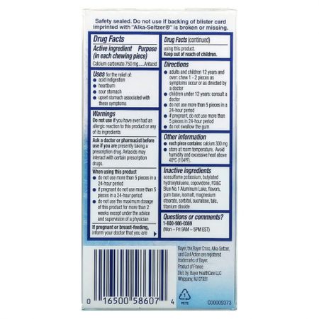 Alka-Seltzer, Жевательная резинка от изжоги, усиленная сила действия, прохладная мята, 16 шт.