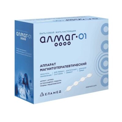 АЛМАГ-01 – магнитотерапевтический аппарат для локального воздействия на человека бегущим импульсным полем Эффективность лечения аппаратом подтверждена его многолетним успешным применением как в поликлиниках и стационарах, так и в домашних условиях. Аппарат способен: бороться с болью и воспалением при артрите, артрозе и остеохондрозе; затормозить разрушение хрящевой ткани; cнимать отеки и повышать тонус сосудов; восстановить функциональность суставов. Основной эффект от применения АЛМАГ-01 заключается в усиление местного кровообращения. За счет чего налаживается обмен веществ, нормализуется питание тканей суставов, повышается обогащение крови кислородом. Все это создает необходимые условия для достижения длительной ремиссии хронических заболеваний. АЛМАГ-01 – предшественник более современной модели АЛМАГ+, он обладает базовым функционалом: воздействует только бегущим импульсным полем; 1 режим работы: основной; состоит из одной линейки излучателей.