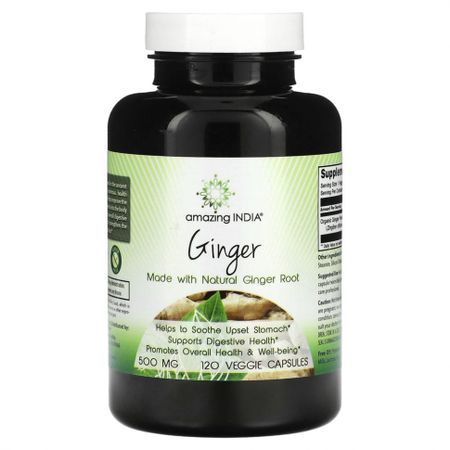 Amazing India, Имбирь, 500 мг, 120 растительных капсул