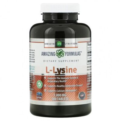 Пищевая ценностьРазмер порции: 1 таблеткаПорций в упаковке: 180 Количество в 1 порции% от суточной нормыСвободная форма L-лизина (в виде L-лизина гидрохлорида)1000 мг**** Суточная норма не определена. Amazing Formulas ™ Пищевая добавка Поддерживает иммунную систему & Здоровье дыхательной системыПоддерживает здоровье соединительных тканей Способствует усвоению кальция Подходит для вегетарианцев Надлежащая производственная практика (GMP) Качественный продукт Средство для поддержки Vitamin Angels®Мы уверены, что Amazing Nutrition® — залог здорового образа жизни. Мы рады предложить вам лучший выбор продуктов, которые идеально подходят для здорового питания и активного образа жизни. L-лизин — незаменимая аминокислота, которую организм использует для создания белков. В качестве аминокислоты L-лизин помогает организму вырабатывать белки, ферменты, коллаген и антитела. L-лизин поддерживает здоровье иммунной системы, здоровых соединительных тканей, здоровых органов и дыхательных путей. L-лизин может способствовать снижению веса, поскольку он помогает преобразовывать жирные кислоты в энергию и способствует увеличению сухой мышечной массы. Он также может поддерживать здоровье костей, способствуя всасыванию кальция в кишечнике.