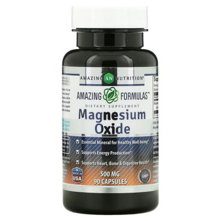 Пищевая ценностьРазмер порции: 1 капсулаПорций в упаковке: 90 Количество в 1 порции% от суточной нормыМагний (в виде оксида магния)500 мг 125% СН — суточная норма Amazing Formulas™Пищевая добавкаНезаменимый минерал для здорового самочувствияПоддерживает выработку энергииПоддерживает сердце и кости & Здоровье пищеварительной системыНадлежащая производственная практика (GMP) Качественный продукт Предприятие подконтрольно Управлению по санитарному надзору за качеством пищевых продуктов и медикаментов (FDA)Мы уверены, что Amazing Nutrition® — залог здорового образа жизни. Мы рады предложить вам лучший выбор продуктов, которые идеально подходят для здорового питания и активного образа жизни. Оксид магния получают из древних океанических отложений. Это важный минерал в нашем организме, примерно половина которого находится в наших костях. Оксид магния является кофактором многих важных функций организма, поддерживая выработку энергии, здоровье сердца, костей и здоровое функционирование организма. Оксид магния также поддерживает здоровье пищеварительной системы, он может работать как антацид при изжоге и как слабительное при запоре.