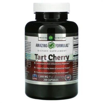 Удивительные формулы®Пищевая добавкаАнтиоксидант & Противовоспалительные свойстваПоддерживает здоровье суставов & Соединительной тканиПоддерживает сбалансированный уровень мочевой кислотыGMP — Надлежащая производственная практика, качественный продуктПредприятие подконтрольно Управлению по санитарному надзору за качеством пищевых продуктов и медикаментов (FDA)Мы уверены, что Amazing Nutrition® — важный компонент здорового образа жизни. Мы рады предложить вам лучший выбор продуктов, которые идеально подходят для здорового питания и активного образа жизни.Пищевая добавка Amazing Formulas ™ Tart Cherry содержит 7000 мг (7 г) терпкой вишни в каждой капсуле, полученной из экстракта премиального качества 10: 1. Вишня содержит важные фитонутриенты, называемые антоцианами, которые придают плодам темно-красный цвет: Антоцианы — это антиоксиданты, способствующие здоровому кровообращению и работе нервной системы. Антиоксиданты обладают широким спектром преимуществ для здоровья, включая нейтрализацию повреждений, вызванных свободными радикалами, поддержку подвижности суставов и соединительных тканей и способствующие здоровому старению. Вишня помогает предотвратить воспаление, что способствует сбалансированному уровню мочевой кислоты.