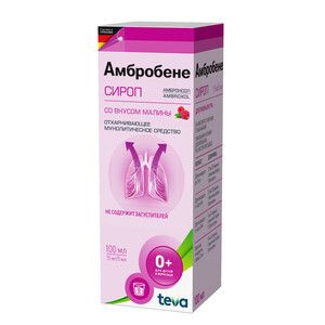 Показания к применениюОстрые и хронические заболевания дыхательных путей сопровождающиеся нарушением образования и отхождения мокроты.Применение при беременности и кормлении грудьюБеременность:Недостаточно данных относительно применения амброксола в период беременности. В частности это касается первых 28 недель беременности. Исследования проводимые на животных не выявили тератогенного эффекта.Применение Амбробене при беременности (II-III триместр) возможно только по назначению врача после тщательной оценки соотношения риск/польза.Период кормления грудью:Исследования проводимые на животных показали что амброксол проникает в грудное молоко. В связи с недостаточным изучением применения препарата у женщин в период кормления грудью применение Амбробене возможно только по назначению врача после тщательной оценки соотношения риск/польза.Противопоказанияповышенная чувствительность к амброксолу или к одному из вспомогательных веществ беременность (I триместр) дефицит сахаразы/изомальтазы непереносимость фруктозы глюкозогалактозная мальабсорбция.Побочное действиеОбщие нарушения:Редко (от ≥ 0 1 % до < 1 %): аллергические реакции (крапивница кожная сыпь ангионевротический отек лица одышка зуд) лихорадка слабость головная боль.Очень редко (< 0 01 %): анафилактические реакции в том числе анафилактический шок.Со стороны желудочно-кишечного тракта:Редко (от ≥ 0 1 % до < 1 %): тошнота боли в животе рвота диарея запоры.Прочие:Редко (от ≥ 0 1 % до < 1 %): сухость слизистой оболочки полости рта и дыхательных путей экзантемы ринорея дизурия.Состав100 мл сиропа содержат: действующее вещество: амброксола гидрохлорид 0 30 г вспомогательные вещества: сорбитол жидкий 70 % 60 00 г пропиленгликоль 5 00 г ароматизатор малиновый 0 10 г сахарин 0 01 г вода очищенная 49 44 г.Взаимодействие с другими препаратамиПри одновременном применении амброксола и противокашлевых средств из-за подавления кашлевого рефлекса может возникнуть застой секрета. Поэтому подобные комбинации следует подбирать с осторожностью.При совместном приеме амброксола и антибиотиков амоксициллина цефуроксима эритромицина и доксициклина концентрация последних в мокроте и бронхиальном секрете увеличивается. Меркле ГмбХ