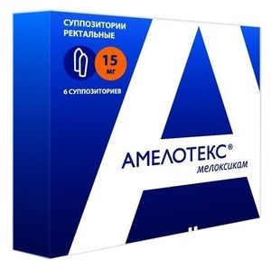 Показания к применению— остеоартроз — ревматоидный артрит — анкилозирующий спондилоартрит (болезнь Бехтерева) — воспалительные и дегенеративные заболевания суставов, сопровождающиеся болевым синдромом (для раствора д/в/м введения). Предназначен для симптоматической терапии, уменьшения боли и воспаления на момент использования, на прогрессирование заболевания не влияет.Применение при беременности и кормлении грудьюПрепарат противопоказан при беременности и в период лактации (грудного вскармливания). Подавление синтеза простагландинов может оказывать нежелательное воздействие на течение беременности и развитие плода. Известно, что НПВП проникают в грудное молоко, поэтому Амелотекс . не рекомендуется применять в период грудного вскармливания. Применение мелоксикама, как и других препаратов, блокирующих синтез простагландинов, может влиять на фертильность, поэтому он не рекомендуется женщинам, планирующим беременность.Состав1 супп. мелоксикам 15 мг. Вспомогательные вещества: жир твердый (Суппосир ВР) — 1628.