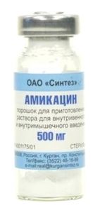 Показания к применениюИнфекционно-воспалительные заболевания тяжелого течения, вызванные чувствительными к амикацину микроорганизмами: перитонит, сепсис, сепсис новорожденных, инфекции ЦНС (в т.ч. менингит), инфекции костей и суставов (в т.ч. остеомиелит), эндокардит, пневмония, эмпиема плевры, абсцесс легкого, гнойные инфекции кожи и мягких тканей, инфицированные ожоги, часто рецидивирующие инфекции мочевыводящих путей, инфекции желчевыводящих путей.Применение при беременности и кормлении грудьюАмикацин противопоказан при беременности. При необходимости применения в период лактации следует решить вопрос о прекращении грудного вскармливания.ПротивопоказанияТяжелые нарушения функции почек, неврит слухового нерва, беременность, повышенная чувствительность к антибиотикам группы аминогликозидов.Побочное действиеСо стороны пищеварительной системы: повышение активности печеночных трансаминаз, гипербилирубинемия, тошнота, рвота. Аллергические реакции: кожная сыпь, зуд, лихорадка; редко — отек Квинке. Со стороны системы кроветворения: анемия, лейкопения, гранулоцитопения, тромбоцитопения. Со стороны нервной системы: головная боль, сонливость, нарушение нервно-мышечной передачи, снижение слуха, вплоть до развития необратимой глухоты, вестибулярные расстройства. Со стороны мочевыделительной системы: олигурия, протеинурия, микрогематурия; редко — почечная недостаточность.СоставАмикацин (в форме сульфата) 500 мг.Взаимодействие с другими препаратамиРиск развития нефротоксического действия повышается при одновременном применении амикацина с амфотерицином B, ванкомицином, метоксифлураном, энфлураном, НПВС, рентгеноконтрастными средствами, цефалотином, циклоспорином, цисплатином, полимиксинами.Риск развития ототоксического действия повышается при одновременном применении амикацина с «петлевыми» диуретиками (фуросемид, этакриновая кислота), цисплатином.При одновременном применении с пенициллинами (при почечной недостаточности) уменьшается противомикробное действие.При одновременном применении с эфиром этиловым и блокаторами нервно-мышечной передачи повышается риск угнетения дыхания.Амикацин несовместим в растворе с пенициллинами, цефалоспоринами, амфотерицином B, хлоротиазидом, эритромицином, гепарином, нитрофурантоином, тиопентоном, а также, в зависимости от состава и концентрации раствора, — с тетрациклинами, витаминами группы B, витамином C и калия хлоридом.