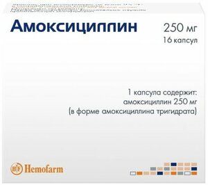 Показания к применениюИнфекционно-воспалительные заболевания, вызванные чувствительными к амоксициллину микроорганизмами: инфекции верхних дыхательных путей (тонзиллофарингит, синусит, острый средний отит), инфекции нижних дыхательных путей (острый бактериальный бронхит, обострение хронического бронхита, внебольничная пневмония), инфекции мочеполовой системы (пиелонефрит, пиелит, цистит, уретрит, эндометрит, цервицит, гонорея), абдоминальные инфекции (холангит, холецистит), эрадикация Helicobacter pylori у пациентов с язвенной болезнью желудка и двенадцатиперстной кишки (всегда в комбинации с другими препаратами), инфекции кожи и мягких тканей (рожа, импетиго, вторично инфицированные дерматозы), лептоспироз, листериоз, болезнь Лайма, инфекции желудочно-кишечного тракта (энтероколит, брюшной тиф, дизентерия, сальмонеллез, вызванный Salmonella typhi, чувствительной к ампициллину, сальмонеллоносительство, профилактика бактериального эндокардита при хирургических процедурах в ротовой полости и верхних дыхательных путях.Применение при беременности и кормлении грудьюБеременность Результаты исследований на животных не указывают на прямое или непрямое влияние на репродуктивную токсичность. Ограниченные данные по применению амоксициллина во время беременности у человека не указывают на повышение риска возникновения врожденных пороков развития. Амоксициллин можно применять во время беременности только в тех случаях, когда ожидаемая польза для матери превышает потенциальный риск для плода. Грудное вскармливание Амоксициллин выделяется в грудное молоко в небольших количествах, при необходимости возможно применение препарата в период грудного вскармливания. У ребенка, находящегося на грудном вскармливании, возможно развитие диареи, сенсибилизации и грибковой инфекции слизистых оболочек, поэтому может потребоваться прекращение грудного вскармливания. Амоксициллин следует применять в период грудного вскармливания только после оценки лечащим врачом соотношения польза/риск.ПротивопоказанияПовышенная чувствительность к амоксициллину, другим бета-лактамным антибиотикам (другим пенициллинам, цефалоспоринам, монобактамам, карбапенемам) или любым компонентам препарата, инфекционный мононуклеоз, лимфолейкоз, детский возраст до 3-х лет (для данной лекарственной формы).