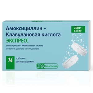 Амоксициллин + клавулановая кислота экспресс Таблетки диспергируемые 250 мг/62,5 мг 14 шт