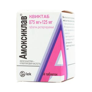 Амоксиклав Квиктаб Таблетки диспергируемые 875 мг + 125 мг 14 шт