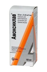 Показания к применениюИнфекции, вызванные чувствительными штаммами микроорганизмов:- инфекции верхних дыхательных путей и ЛОР-органов (в т.ч. острый и хронический синусит, острый и хронический средний отит, заглоточный абсцесс, тонзиллит, фарингит);- инфекции нижних отделов дыхательных путей (в т.ч. острый бронхит с бактериальной суперинфекцией, хронический бронхит, пневмония);- инфекции мочевыводящих путей;- гинекологические инфекции;- инфекции кожи и мягких тканей, включая укусы животных и человека;- инфекции костной и соединительной ткани;- инфекции желчных путей (холецистит, холангит);- одонтогенные инфекции.Применение при беременности и кормлении грудьюАмоксиклав можно назначать при беременности при наличии четких показаний.Амоксициллин и клавулановая кислота в небольших количествах выделяются с грудным молоком.Противопоказания- повышенная чувствительность к любому из компонентов препарата;- повышенная чувствительность в анамнезе к пенициллинам, цефалоспоринам и другим бета-лактамным антибиотикам;- наличие в анамнезе указаний на холестатическую желтуху и/или другие нарушения функции печени, вызванные приемом амоксициллина/клавулановой кислоты;- инфекционный мононуклеоз и лимфолейкоз.СоставВ 5 мл готовой сусп содержится: Амоксициллин (в форме тригидрата) 125 мгКлавулановая кислота (в форме калиевой соли) 31,25 мгВспомогательные вещества: лимонная кислота (безводная) — 2.167 мг, натрия цитрат (безводный) — 8.335 мг, натрия бензоат — 2.085 мг, целлюлоза микрокристаллическая и кармеллоза натрия — 28.1 мг, камедь ксантановая — 10 мг, кремния диоксид коллоидный — 16.667 мг, кремния диоксид — 217 мг, ароматизатор клубничный — 15 мг, натрия сахаринат — 5.5 мг, маннитол — 1250 мг.