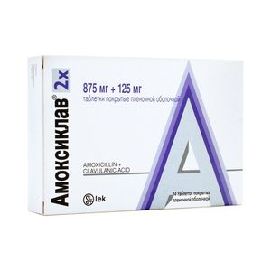Показания к применениюЛечение инфекционно-воспалительных заболеваний, вызванных чувствительными к препарату микроорганизмами: — инфекции верхних отделов дыхательных путей и ЛОР-органов (в т.ч. острый и хронический синусит, острый и хронический средний отит, заглоточный абсцесс, тонзиллит, фарингит), — инфекции нижних отделов дыхательных путей (в т.ч. острый бронхит с бактериальной суперинфекцией, хронический бронхит, пневмония), — инфекции мочевыводящих путей, — гинекологические инфекции, — инфекции кожи и мягких тканей, включая укусы человека и животных, — инфекции костной и соединительной ткани, — инфекции желчных путей (холецистит, холангит), — одонтогенные инфекции.Применение при беременности и кормлении грудьюАмоксиклав можно применять во время беременности, если ожидаемая польза для матери превышает потенциальный риск для плода. Амоксициллин и клавулановая кислота в небольших количествах выделяются с грудным молоком.Противопоказания — указание в анамнезе на холестатическую желтуху или на нарушения функции печени, вызванные приемом амоксициллина/клавулановой кислоты, — инфекционный мононуклеоз, — лимфолейкоз, — повышенная чувствительность к антибиотикам группы пенициллинов, цефалоспоринов и другим бета-лактамным антибиотикам (в анамнезе), — повышенная чувствительность к амоксициллину или клавулановой кислоте.Побочное действиеСо стороны пищеварительной системы: возможны потеря аппетита, тошнота, рвота, диарея, редко — боли в животе, транзиторное повышение активности печеночных ферментов (АЛТ, АСТ), нарушения функции печени, в единичных случаях — холестатическая желтуха, гепатит, псевдомембранозный колит. Аллергические реакции: эритематозная сыпь, зуд, крапивница, редко — многоформная экссудативная эритема, ангионевротический отек, анафилактический шок, аллергический васкулит, в единичных случаях — эксфолиативный дерматит, синдром Стивенса-Джонсона, острый генерализованный экзантематозный пустулез.Со стороны системы кроветворения: редко — обратимая лейкопения (включая нейтропению), тромбоцитопения, очень редко — гемолитическая анемия, обратимое увеличение протромбинового времени (при совместном применении с антикоагулянтами), эозинофилия, панцитопения.Со стороны нервной системы: головокружение, головная боль, очень редко — судороги (могут проявляться у пациентов с нарушением функции почек при приеме препарата в высоких дозах), гиперактивность, чувство тревоги, бессонница.Со стороны мочевыделительной системы: очень редко — интерстициальный нефрит, кристаллурия.Прочие: редко — развитие суперинфекции (в т.ч. кандидоз). Побочные эффекты в большинстве случаев слабо выраженные и преходящие.