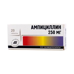 Показания к применениюИнфекционно-воспалительные заболевания, вызванные чувствительными к действию ампициллина тригидрата микроорганизмами. воспалительные заболевания верхних дыхательных путей (фарингиты, ларингиты, бронхиты). острые и хронические тонзиллиты (ангины). отиты и синуситы. инфекции мочеи желчевыводящих путей (пиелит, пиелонефрит, цистит, холангит, холецистит). инфекции желудочно-кишечного тракта, в том числе дизентерии, иерсиниозы,сальмонеллезоносительство.Применение при беременности и кормлении грудьюВозможно применение ампициллина при беременности по показаниям. Ампициллин выделяется с грудным молоком в низких концентрациях. При необходимости применения ампициллина в период лактации следует решить вопрос о прекращении грудного вскармливания.ПротивопоказанияПовышенная индивидуальная чувствительность (в том числе к другим пенициллинам, цефалоспоринам, карбапенемам), инфекционный мононуклеоз, лимфолейкоз, тяжелые нарушения функции печени, детский возраст (до 4 лет).Побочное действиеАллергические реакции крапивница, эритема, ангионевротический отек, ринит, конъюнктивит, редко – лихорадка, боли в суставах, эозинофилия, крайне редко – анафилактический шок.Со стороны желудочно-кишечного тракта тошнота, рвота.Эффекты, обусловленные химиотерапевтическим действием кишечный дисбактериоз, псевдомембранозный колит, вызываемый С. difficile, кандидоз полости рта, вагинальный кандидоз.Со стороны системы кроветворения редко – лейкопения, нейтропения, тромбоцитопения, агранулоцитоз, анемия, удлинение времени кровотечения и повышение уровня протромбина.Со стороны почек интерстициальный нефрит.Со стороны печени транзиторное повышение уровня печеночных трансаминаз, гепатит, холестатическая желтуха.СоставВ 1 таблетке содержится: действующего вещества – ампициллина (в виде ампициллина тригидрата) — 250 мг, вспомогательные вещества: крахмал картофельный, тальк, кальция стеарат, кроскармеллоза натрия.
