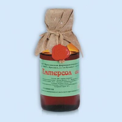 Показания в составе комплексной терапии воспалительных заболеваний дыхательных путей, сопровождающихся кашлем с трудноотделяемой мокротой (трахеит, бронхит, трахеобронхит). Фармакологическое действие Экстракт солодкового корня оказывает отхаркивающее действие, обусловленное, в первую очередь, наличием глицирризина, усиливающего секреторную функцию слизистых оболочек верхних дыхательных путей. Экстракт термопсиса обладает отхаркивающим действием, оказывая умеренное раздражающее действие на рецепторы слизистой оболочки желудка, рефлекторно повышает секрецию бронхиальных желез. Содержащиеся в траве термопсиса алкалоиды (метилцитизин, пахикарпин, анагирин, термопсин, термопсидин) оказывают возбуждающее действие на дыхательный, а в высоких дозах, на рвотный центры. Калия бромид снижает возбудимость ЦНС. Аммония хлорид оказывает отхаркивающее, диуретическое действие. Лекарственное взаимодействие Амтерсол не следует применять одновременно с препаратами, содержащими противокашлевые лекарственные средства, так как это затрудняет откашливание разжиженной мокроты.