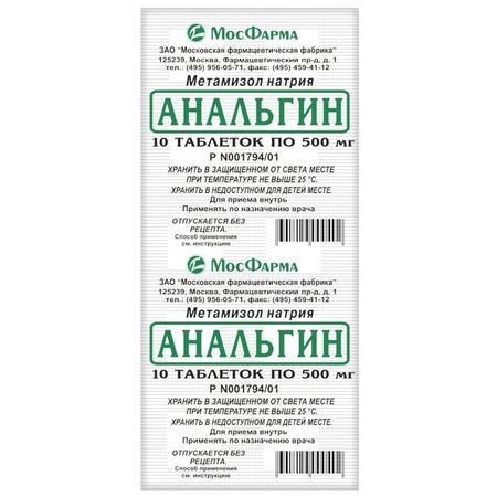 Показания После приема внутрь метамизол натрия быстро гидролизуется в желудочном соке с образованием активного метаболита 4-метил-амино-антипирина, который после всасывания метаболизируется в 4-формил-амино-антипирин и другие метаболиты. После в/в введения метамизол натрия быстро становится недоступным для определения. Метаболиты метамизола натрия не связываются с белками плазмы. Наибольшая часть дозы выводится с мочой в форме метаболитов. Метаболиты выделяются с грудным молоком. Фармакологическое действие Анальгетик-антипиретик. Является производным пиразолона. Оказывает анальгетическое, жаропонижающее и противовоспалительное действие, механизм которого связан с угнетением синтеза простагландинов. Лекарственное взаимодействие Метамизол натрия может вызывать снижение концентрации циклоспорина в плазме, поэтому при их одновременном применении следует контролировать концентрацию циклоспорина. При одновременном применении метамизола натрия с хлорпромазином возможно развитие тяжелой гипотермии. Одновременное применение метамизола натрия и метотрексата или других миелотоксичных средств может усиливать гематотоксичность последнего, особенно у пациентов пожилого возраста. При одновременном применении усиливается активность непрямых антикоагулянтов, пероральных гипогликемических препаратов, ГКС, индометацина вследствие их вытеснения из связи с белками крови под влиянием метамизола натрия. Трициклические антидепрессанты, пероральные контрацептивы, аллопуринол нарушают метаболизм метамизола натрия в печени и повышают его токсичность. Барбитураты, фенилбутазон и другие индукторы микросомальных ферментов печени ослабляют действие метамизола натрия. Седативные средства и транквилизаторы усиливают обезболивающее действие метамизола натрия. При одновременном применении метамизола натрия тиамазол повышает риск развития лейкопении. Кодеин, блокаторы Н2-гистаминовых рецепторов и пропранолол усиливает эффекты метамизола натрия. При одновременном применении с ацетилсалициловой кислотой (АСК) метамизол натрия может уменьшать влияние АСК наагрегацию тромбоцитов. Поэтому данную комбинацию следует применять с осторожностью при лечении пациентов, принимающих АСК в качестве антиагрегантного средства. При одновременном применении метамизол натрия может снижать концентрацию бупропиона в крови. Известно, что производные пиразолона могут взаимодействовать с непрямыми антикоагулянтами, каптоприлом, литием и триамтереном, а также влиять на эффективность гипотензивных средств и диуретиков. Ввиду повышенного риска развития анафилактических/анафилактоидных реакций во время лечения метамизолом натрия не следует применять рентгенконтрастные вещества, коллоидные кровезаменители и пенициллин. Миелотоксичные лекарственные средства усиливают проявление гематотоксичности метамизола натрия