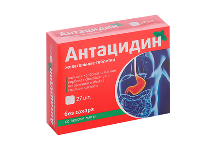 Антацидин, 27 шт, таблетки жевательные мятные без сахара