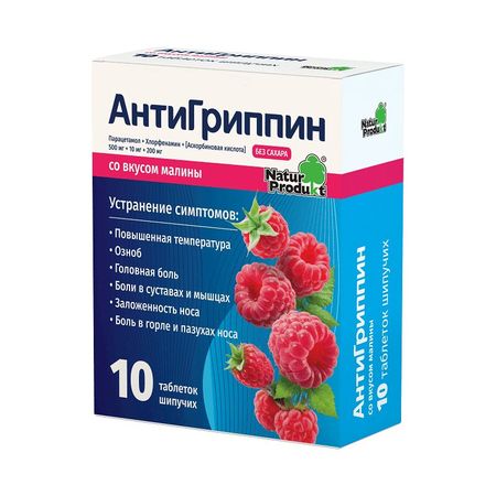 Показания инфекционно-воспалительные заболевания (ОРВИ, грипп), сопровождающиеся повышенной температурой, ознобом, головной болью, болями в суставах и мышцах, заложенностью носа и болями в горле и пазухах носа. Фармакологическое действие Комбинированный препарат. Парацетамол обладает анальгезирующим и жаропонижающим действием; устраняет головную и другие виды боли, снижает повышенную температуру. Хлорфенамин — блокатор гистаминовых Н1-рецепторов, обладает противоаллергическим действием, облегчает дыхание через нос, снижает чувство заложенности носа, чихание, слезотечение, зуд и покраснение глаз. Аскорбиновая кислота (витамин С) участвует в регулировании окислительно-восстановительных процессов, углеводного обмена, повышает сопротивляемость организма. Лекарственное взаимодействие Повышает концентрацию в крови бензилпенициллина и тетрациклинов. Улучшает всасывание в кишечнике препаратов железа (переводит трехвалентное железо в двухвалентное); может повышать выведение железа при одновременном применении с дефероксамином. Увеличивает риск развития кристаллурии при лечении салицилатами и сульфаниламидами короткого действия, замедляет выведение почками кислот, повышает выведение лекарственных средств, имеющих щелочную реакцию (в т.ч. алкалоидов), снижает концентрацию в крови пероральных контрацептивов. Повышает общий клиренс этанола. Этанол усиливает седативное действие антигистаминных препаратов. Антидепрессанты, противопаркинсонические средства, антипсихотические средства (производные фенотиазина) повышают риск развития побочных эффектов (задержка мочи, сухость во рту, запоры). Глюкокортикоиды увеличивают риск развития глаукомы. При одновременном применении препарат уменьшает хронотропное действие изопреналина. Может как повышать, так и снижать эффект антикоагулянтных препаратов. Уменьшает терапевтическое действие антипсихотических препаратов (нейролептиков) — производных фенотиазина, канальцевую реасорбцию амфетамина и трициклических антидепрессантов. Индукторы микросомального окисления в печени (фенитоин, этанол, барбитураты, рифампцин, фенилбутазон, трициклические антидепрессанты) увеличивают продукцию гидроксилированных активных метаболитов, что обусловливает возможность развития тяжелых интоксикаций при небольших передозировках. Этанол способствует развитию острого панкреатита. Ингибиторы микросомального окисления (в т.ч. циметидин) снижают риск гепатотоксического действия. Одновременный прием препарата и дифлунисала повышает концентрацию в плазме крови парацетамола на 50%, повышается гепатотоксичность. Одновременный прием барбитуратов снижает эффективность парацетамола, повышает выведение аскорбиновой кислоты с мочой. Парацетамол снижает эффективность урикозурических препаратов, усиливает действие снотворных лекарственных средств.