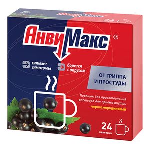 Показания к применениюЭтиотропное лечение гриппа типа А; симптоматическое лечение «простудных» заболеваний, гриппа и ОРВИ, сопровождающихся повышением температуры, болями в мышцах, головной болью, ознобом у взрослых.Применение при беременности и кормлении грудьюПрименение при беременности и в период грудного вскармливания противопоказано.Противопоказания— повышенная чувствительность к одному или нескольким компонентам, входящим в состав препарата; — эрозивно-язвенные поражения ЖКТ в фазе обострения; — желудочно-кишечные кровотечения; — гемофилия; — геморрагический диатез; — гипопротромбинемия; — портальная гипертензия; — авитаминоз К; — почечная недостаточность; — заболевания щитовидной железы; — острые заболевания почек, печени (острый гломерулонефрит, острый пиелонефрит, острый гепатит), либо обострение хронических заболеваний данных органов; — хронический алкоголизм; — гиперкальциемия, выраженная гиперкальциурия; — нефроуролитиаз; — саркоидоз; — одновременный прием сердечных гликозидов (риск возникновения аритмий); — непереносимость лактозы, дефицит лактазы, глюкозо-галактозная мальабсорбция; — фенилкетонурия (для порошка); — беременность; — период грудного вскармливания; — детский и подростковый возраст до 18 лет.Побочное действиеСо стороны нервной системы: повышенная возбудимость, сонливость, тремор, гиперкинезия, головокружение, головная боль, «приливы» крови к лицу.;Со стороны пищеварительной системы: поражение слизистой оболочки желудка и двенадцатиперстной кишки, диспепсия, сухость слизистой оболочки во рту, отсутствие аппетита, метеоризм, диарея.;Со стороны мочевыделительной системы: умеренная поллакиурия.;Со стороны системы кроветворения: изменения показателей крови (необходим контроль).;Со стороны эндокринной системы: угнетение функции инсулярного аппарата поджелудочной железы (гипергликемия, глюкозурия).;Аллергические реакции: кожная сыпь, зуд, крапивница.;Если любые из указанных в инструкции побочных эффектов усугубляются или отмечаются любые другие побочные эффекты, не указанные в инструкции, пациенту следует немедленно сообщить об этом врачу.СоставПарацетамол 360 мг;аскорбиновая кислота 300 мг;кальция глюконата моногидрат 100 мг;римантадина гидрохлорид 50 мг;рутозид (в форме тригидрата) 20 мг;лоратадин 3 мг;Вспомогательные вещества: аспартам — 30 мг, гипромеллоза — 10 мг, кремния диоксид коллоидный — 20 мг, лактозы моногидрат — 4086 мг, ароматизатор (черносмородиновый)- 21 мг.