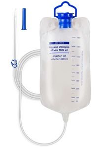Кружка изготовлена из прозрачного полиэтилена. Удлинительная трубка из имплантационного-нетоксичного, термопластичного поливинилхлорида. Объем мешка:1500мл. Градуировка на мешке от 50 мл, цена деления-100 мл. Длина соединительной трубки 1,5м, диаметр CH/FR 20. Наконечником является дистальный отдел соединительной трубки, обработанный жидким медицинским силиконом. Одно торцевое отверстие и одно боковое отверстие на расстоянии 2,5 см от дистального конца трубки. Стерилизована оксидом этилена.