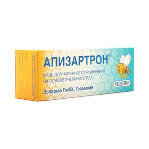 Показания к применению- Заболевания опорно-двигательного аппарата (остеоартроз, ревматическое поражение мягких тканей).- Артралгии (в т.ч. ревматические заболевания суставов).- Миалгии (в т.ч. связанные с перенапряжением.- Невралгии (в т.ч. невриты, ишиас).- Нарушения периферического кровообращения.- Болевой синдром при мягких поражениях мышц, сухожилий, связок, при ушибах и растяжениях.- Для разогревания мышц до и во время спортивных нагрузок.Применение при беременности и кормлении грудьюНе рекомендуется применение мази Апизартрон при беременности и в период лактации (грудного вскармливания).Противопоказания- Хроническая почечная недостаточность тяжелой степени.- Тяжелые заболевания печени.- Заболевания кожи.- Новообразования.- Угнетение костномозгового кроветворения.- Психические заболевания.- Острый артрит.- Детский возраст до 12 лет.- Повышенная чувствительность к пчелиному яду, салицилатам, изотиацианатам.Побочное действиеАллергические реакции: редко — кожная сыпь, зуд в области нанесения мази.Состав100 г мази содержит:Активное вещество: яд пчелиный 3 мг, метилсалицилат 10 г, аллилизотиоцианат 1 гВспомогательные вещества: натрия лаурилсульфат — 700 мг, вазелин белый — 6 г, эмульгированный цетостеариловый спирт — 14 мг (натрия цетилстеарилсульфат — 1.4 г, цетостеариловый спирт — 12.6 г), вода — до 100 г.Взаимодействие с другими препаратамиЛекарственное взаимодействие препарата Апизартрон не описано.