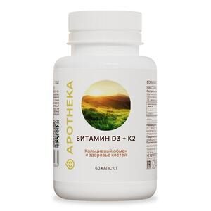 Комплекс витаминов Д3 2000 ME (50мкг) + K2 50 мкг от премиального бренда APOTHEKA имеет синергетический эффект от сочетания двух активных компонентов, способствуя правильному усвоению кальция. Витамин К2 и D3 выполняют одинаковую функцию в организме, но с разных «ракурсов», поэтому совместный прием этих двух веществ даст более мощный результат. БАД для здоровья костей содержит необходимое количество витамина D для поддержания здоровья организма, поддержки иммунитета, здоровья зубов и костей. Витамин Д3 для взрослых в составе пищевой добавки для женщин и мужчин регулирует кальциевый и фосфорный обмен, поэтому необходим для здоровья костей, волос, ногтей и зубов для взрослых и детей.Холекальциферол (витамин Д3) поддерживает здоровье, укрепляет кости и зубы, препятствует развитию остеопороза, переломов и травм, в т. ч. в период климакса или менопаузы у женщин. Витамин К2 доставит кальций в нужные части организма, тем самым усиливая эффект укрепления и формирования костной ткани. Биодобавка препятствует развитию возрастных заболеваний костной системы, поэтому подходит и для пожилых людей. Рекомендации по применению: по 1 капсуле 1 раз в день во время еды или в соответствии с вашей индивидуальной программой питания или рекомендациями врача. APOTHEKA – эксперт в области продуктов для красоты и здоровья. Бренд выпускает как классические витамины и минералы, так и продукты с уникальным составом и ингредиентами – комплексы с грибами, суперфуды, травы, – а также средства по уходу за кожей.Бренд APOTHEKA был создан в Германии на заводе, который специализируется на производстве лекарственных средств, витаминных комплексов, витаминов и минералов уже более 170 лет. Эксперты бренда занимаются изучением возможностей природы и современных достижений науки, чтобы разрабатывать сбалансированные составы и уникальные формы выпуска. Мы работаем с инновационными технологиями производства на лучших зарубежных и российских производственных площадках. Безопасность всех БАД подтверждена свидетельством о государственной регистрации (СГР). Разработка формулы и производство данного БАДа осуществлялось на территории России. Для производства БАД используется высококачественное сырье.