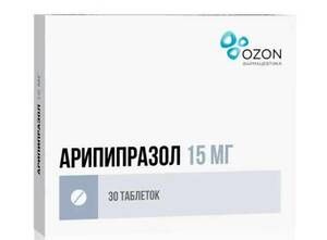 Главная » Аптека Арипипразол-Озон Таблетки 15 мг 30 шт Просмотров 6 Круглые плоскоцилиндрические таблетки белого или почти белого цвета с риской и фаской. Озон