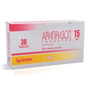 Показания к применению• Шизофрения: острые приступы и поддерживающая терапия • Биполярное расстройство I типа: маниакальные эпизоды и поддерживающая терапия с целью предотвращения рецидивов у пациентов с биполярным расстройством I типа, недавно перенесших маниакальный или смешанный эпизод • Дополнение к терапии препаратами лития или вальпроевой кислоты для лечения маниакальных или смешанных эпизодов в рамках биполярного расстройства I типа при наличии психотических симптомов или без них и поддерживающая терапия с целью предотвращения рецидивов у пациентов с биполярным расстройством I типа • Дополнение к антидепрессивной терапии при большом депрессивном расстройствеПрименение при беременности и кормлении грудьюАдекватных и строго контролируемых клинических исследований безопасности применения у беременных женщин не проводилось. Неизвестно, может ли применение препарата Арипризол® беременной женщиной оказать вредное воздействие на плод или вызвать нарушения репродуктивной функции. У новорожденных, матери которых принимали нейролептики в течение последнего триместра беременности, в послеродовом периоде существует риск развития экстрапирамидных расстройств и синдрома «отмены». Зарегистрированы случаи возбуждения, мышечной гипертонии или гипотонии, тремора, сонливости, респираторного дистресс-синдрома, нарушения при кормлении. Данные симптомы имели различную степень тяжести, иногда они проходили без лечения, в других случаях новорожденные нуждались в интенсивной терапии и продолжительной госпитализации. При применении арипипразола развитие у новорожденных подобной симптоматики отмечалось очень редко. Пациенток следует предупредить, что они должны немедленно сообщить врачу о наступлении беременности на фоне лечения, а также следует проинформировать врача о планируемой беременности. Препарат Арипризол® можно применять при беременности, только если потенциальная польза применения для матери превышает возможный риск для плода. Грудное вскармливание. Арипипразол проникает в грудное молоко. В случае необходимости применения препарата грудное вскармливание отменяют.»ПротивопоказанияГиперчувствительность к арипипразолу или к любому компоненту препарата, возраст до 18 лет, дефицит лактазы, редкая наследственная галактоземия, глюкозо-галактозная мальабсорбция.СоставОдна таблетка содержит: действующее вещество: арипипразол 10,00 / 15,00 / 30,00 мг. Вспомогательные вещества: лактозы моногидрат — 61,23 / 91,53 / 183,69 мг, крахмал кукурузный — 10,45 / 15,675 / 31,35 мг, целлюлоза микрокристаллическая — 10,45 / 15,675 / 31,35 мг, гипролоза — 1,90 / 2,85 / 5,70 мг, магния стеарат — 0,95 / 1,425 / 2,85 мг, краситель железа оксид красный (Е172) (для дозировок 10 мг и 30 мг) — 0,02 / 0,06 мг, краситель железа оксид желтый (Е172) (для дозировки 15 мг) — 0,345 мг.