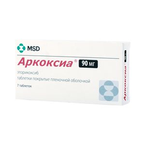 Показания к применениюПрепарат Аркоксиа применяют для симптоматического лечения таких заболеваний и состояний, как: ревматоидный артрит острый подагрический артрит анкилозирующий спондилит остеоартроз Препарат также назначают после стоматологических операций для лечения выраженной острой и умеренной боли. Противопоказания Абсолютные: обострения воспалительных заболеваний кишечника (неспецифический язвенный колит и болезнь Крона) тяжелая недостаточность функции почек (клиренс креатинина менее 30 мл/мин), подтвержденная гиперкалиемия, прогрессирующие почечные заболевания активное желудочно-кишечное, цереброваскулярное или другое кровотечение эрозивно-язвенные поражения слизистой оболочки 12-перстной кишки или желудка тяжелая печеночная недостаточность, заболевания печени в активной фазе стойко сохраняющееся повышенное артериальное давление при неконтролируемой артериальной гипертензии нарушения свертываемости крови (в том числе гемофилия) клинически выраженная ишемическая болезнь сердца, цереброваскулярные заболевания и заболевания периферических артерий, период после АКШ (аортокоронарного шунтирования) выраженная сердечная недостаточность неполное или полное сочетание следующих заболеваний (в том числе в анамнезе): рецидивирующий полипоз носа или околоносовых пазух, бронхиальная астма и непереносимость ацетилсалициловой кислоты и других НПВС детский и подростковый возраст до 16 лет период беременности и кормления грудью гиперчувствительность к любому из компонентов препарата Относительные (Аркоксиа применяют с осторожностью): тяжелые соматические заболевания наличие в анамнезе данных о развитии язвенного поражения желудочно-кишечного тракта и инфекции Хеликобактер пилори артериальная гипертензия сахарный диабет отеки и задержка жидкости дислипидемия/гиперлипидемия почечная недостаточность (при клиренсе креатинина менее 60 мл/мин) курение частое употребление алкоголя пожилой возраст длительное использование НПВС сопутствующая терапия антиагрегантами, глюкокортикостероидами, антикоагулянтами и селективными ингибиторами обратного захвата серотонина Применение при беременности и кормлении грудьюПрепарат противопоказан при беременности и в период лактации. Применение препарата может отрицательно влиять на женскую фертильность и не рекомендуется женщинам, планирующим беременность.СоставАлендронат натрия. Вспомогательные вещества: целлюлоза микрокристаллическая — 140 мг, лактоза безводная — 113.4 мг, кроскармеллоза натрия — 3.5 мг, магния стеарат — 1.75 мг.