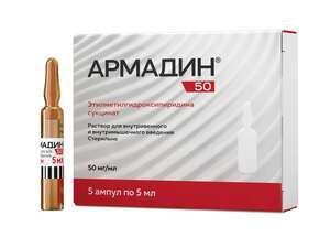 Главная » Аптека Армадин 50 Раствор для внутривенного и внутримышечного введения 50 мг/мл 5 мл 5 шт Просмотров 5 Прозрачная, бесцветная или с желтоватым или коричневатым оттенком жидкость. ФармаГрант